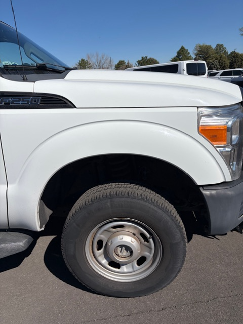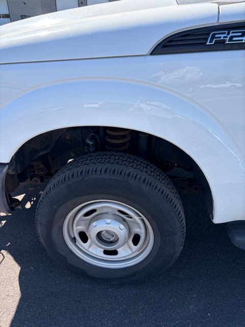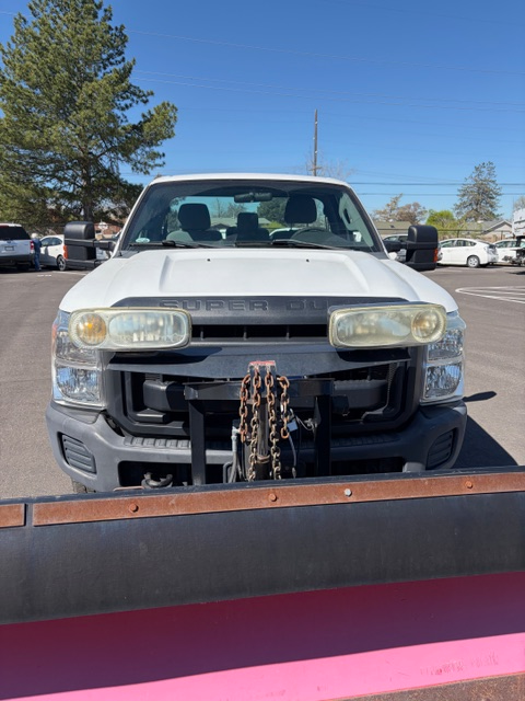 2011 FORD F250 XL REGULAR CAB 4X4 TRUCK -- UNLEADED/E85 -- WHITE -- 42,298 MILES ===== WITH 2011 WESTERN IUTPY80 8' STRAIGHT BLADE SNOWPLOW ===== DINGS - SCRATCHES - RUST - DENT W/PAINT PEEL - DRIVER'S SEAT HANDLE BROKEN - DRIVER'S SEAT OEM UPHOLSTERY HEAVILY STAINED WITH TEARS - DRIVER'S SEAT COVER HEAVILY STAINED WITH HOLES - MODERATELY STAINED UPHOLSTERY ON OTHER SEATS AND HEADLINER - STEERING WHEEL WORN - SCRATCHED INTERIOR STALL 74 2011 WESTERN IUTPY80 8' STRAIGHT BLADE SNOWPLOW